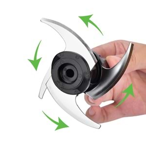 • 3 ü 1 arada kullanım, doğrayıcı, çırpıcı, parçalayıcı.